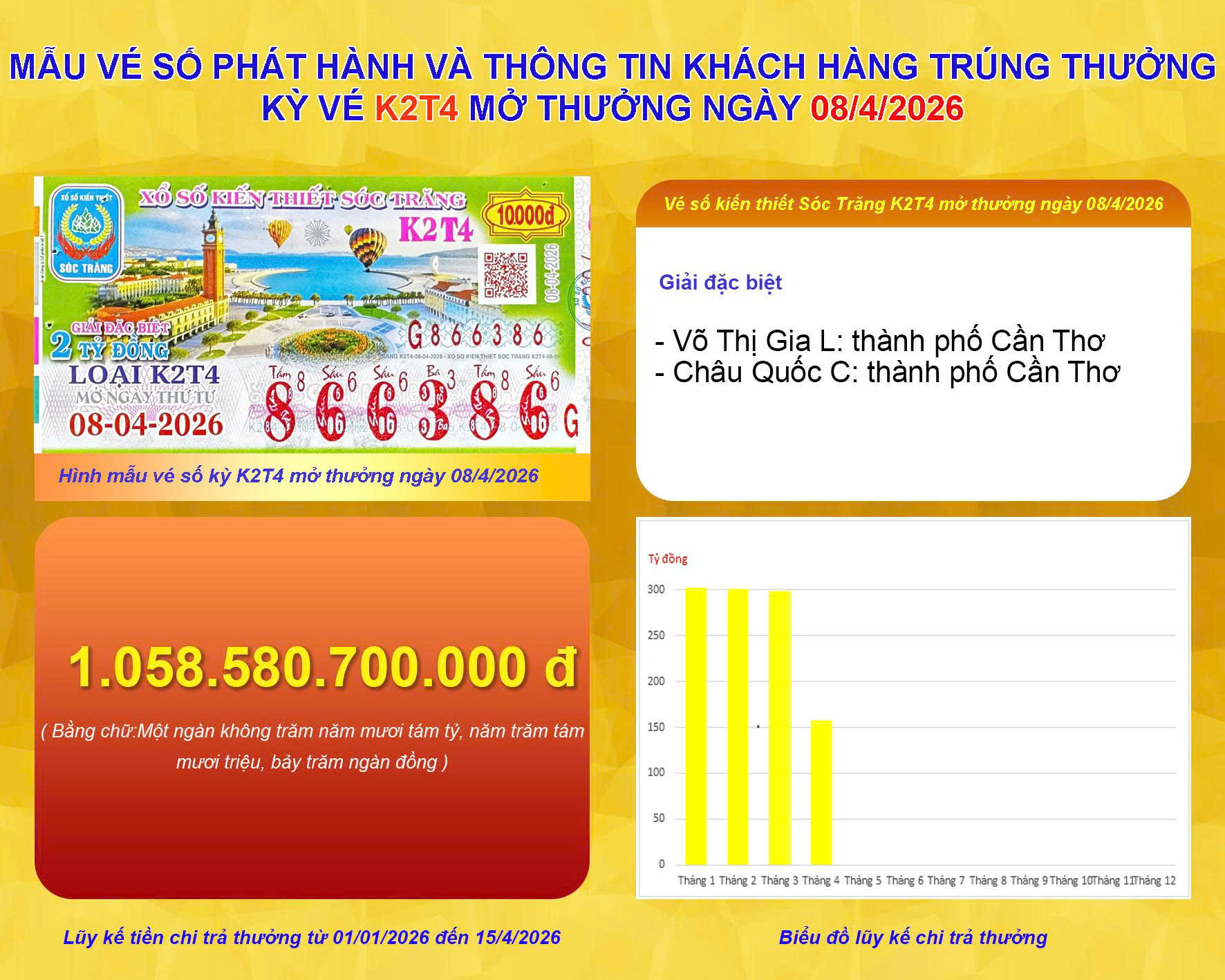 * * Vé số Sóc Trăng quay số mở thưởng vào lúc 16 giờ 15 phút ngày thứ Tư hàng tuần, tại số 16 Trần Hưng Đạo, phường Phú Lợi, thành phố Cần Thơ. Kết quả xổ số kiến thiết Sóc Trăng được truyền hình trực tiếp trên kênh truyền hình Thành phố Cần Thơ 3, phát thanh trực tiếp trên sóng FM tần số 100.4 Mhz Phát thanh Thành phố Cần Thơ và trên sóng AM tần số 610 Khz Đài tiếng nói Nhân dân Thành phố Hồ Chí Minh.