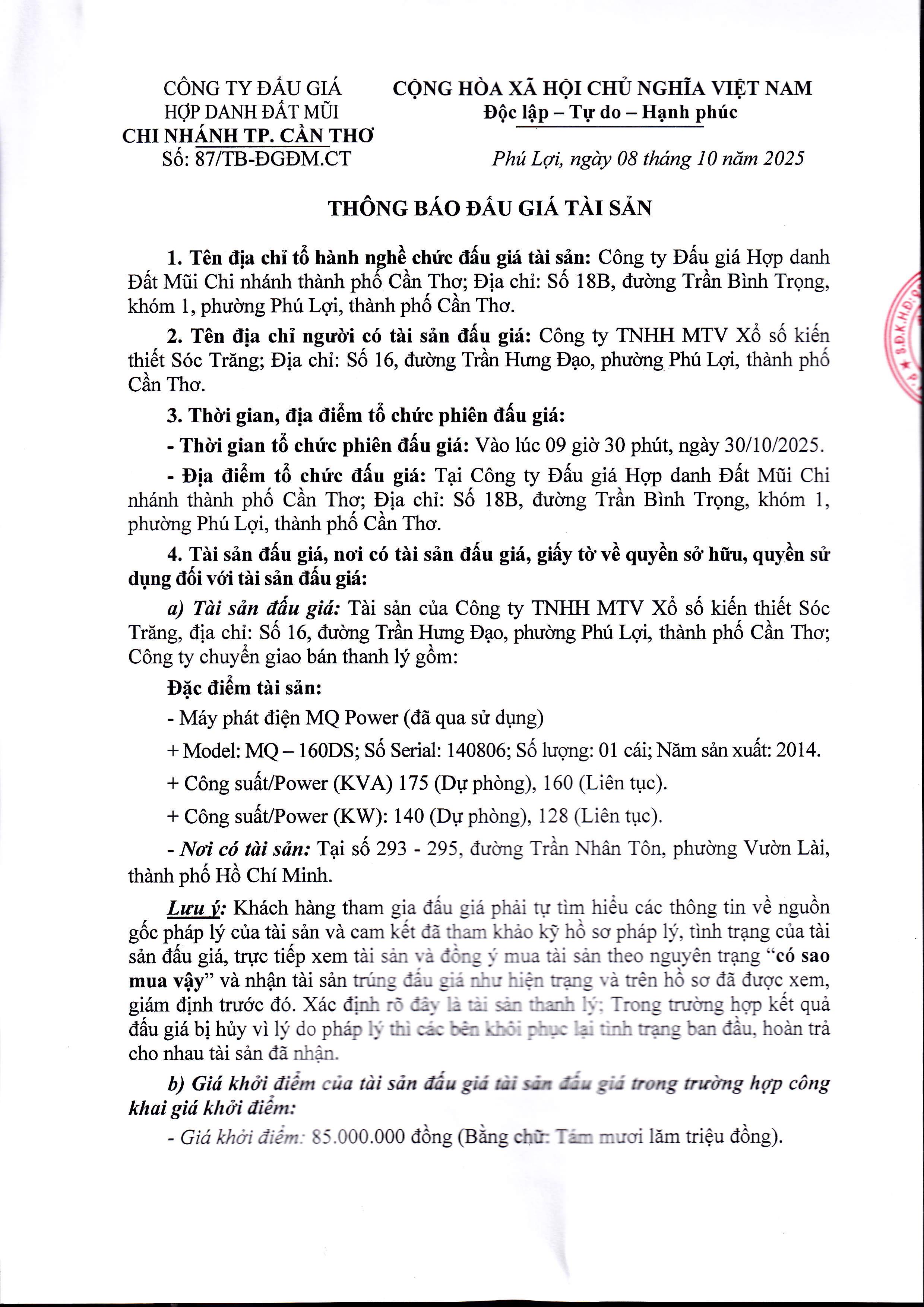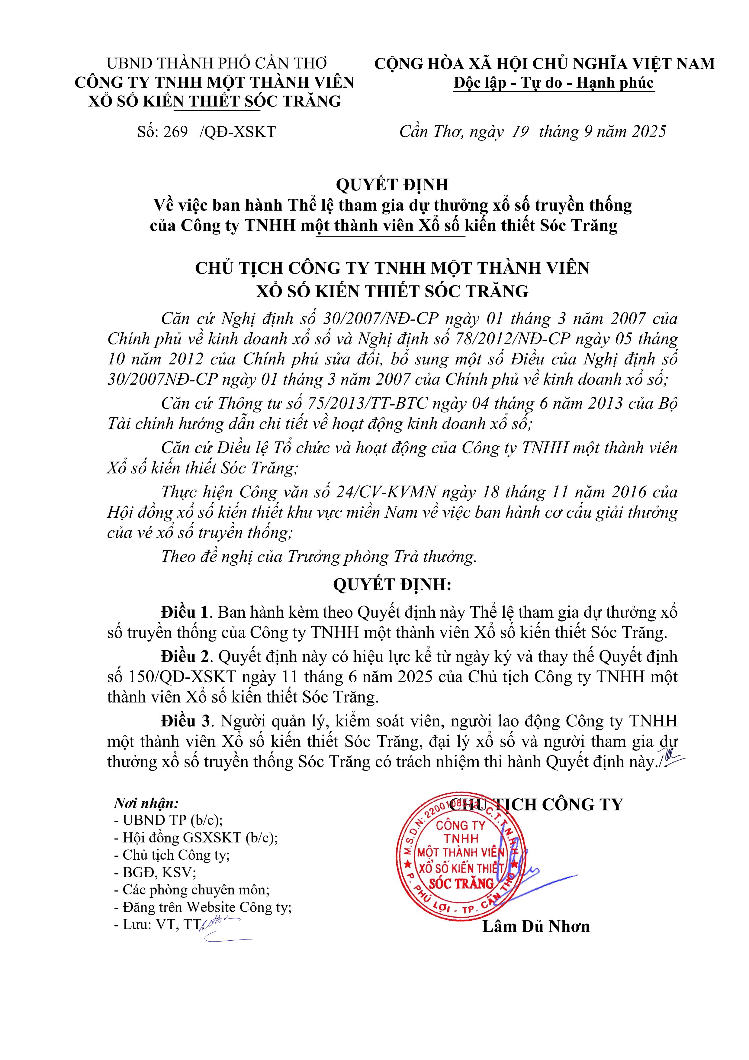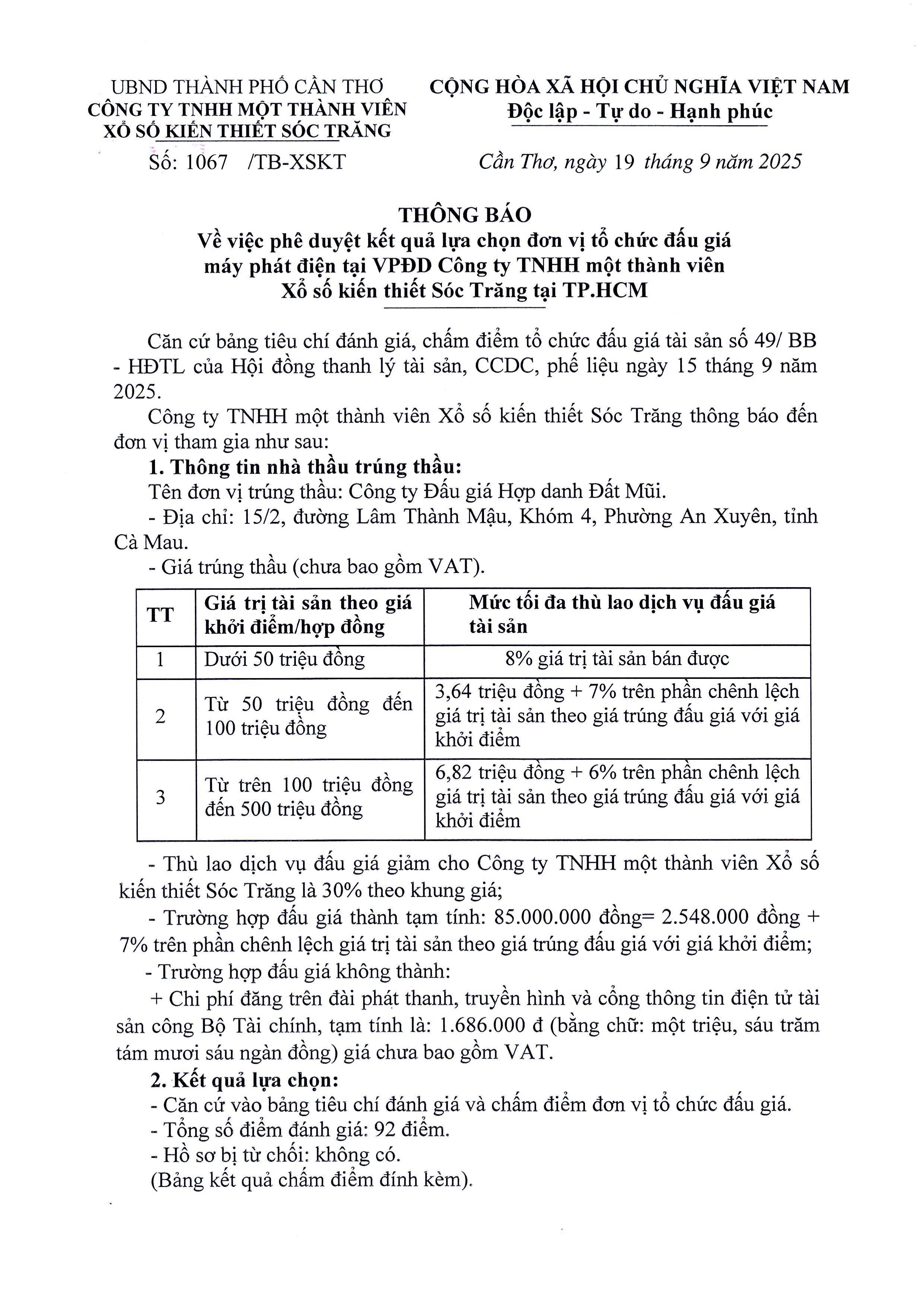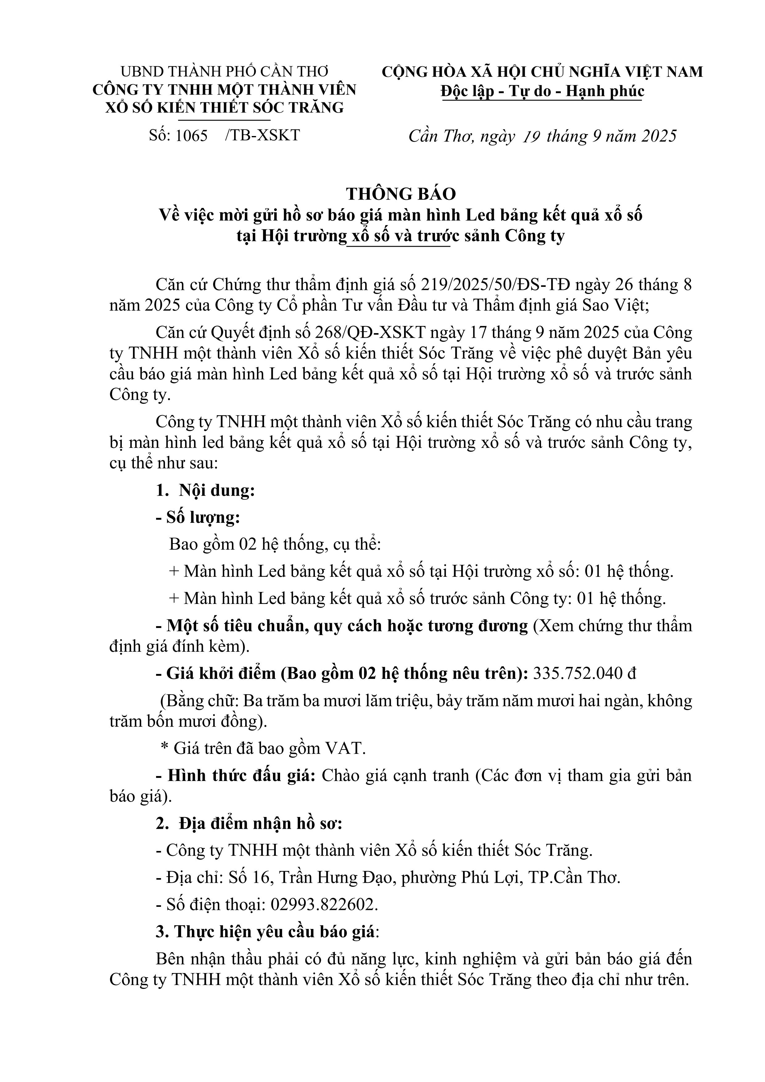 * * Vé số Sóc Trăng quay số mở thưởng vào lúc 16 giờ 15 phút ngày thứ Tư hàng tuần, tại số 16 Trần Hưng Đạo, phường Phú Lợi, thành phố Cần Thơ. Kết quả xổ số kiến thiết Sóc Trăng được truyền hình trực tiếp trên kênh truyền hình Thành phố Cần Thơ 3, phát thanh trực tiếp trên sóng FM tần số 100.4 Mhz Phát thanh Thành phố Cần Thơ và trên sóng AM tần số 610 Khz Đài tiếng nói Nhân dân Thành phố Hồ Chí Minh.